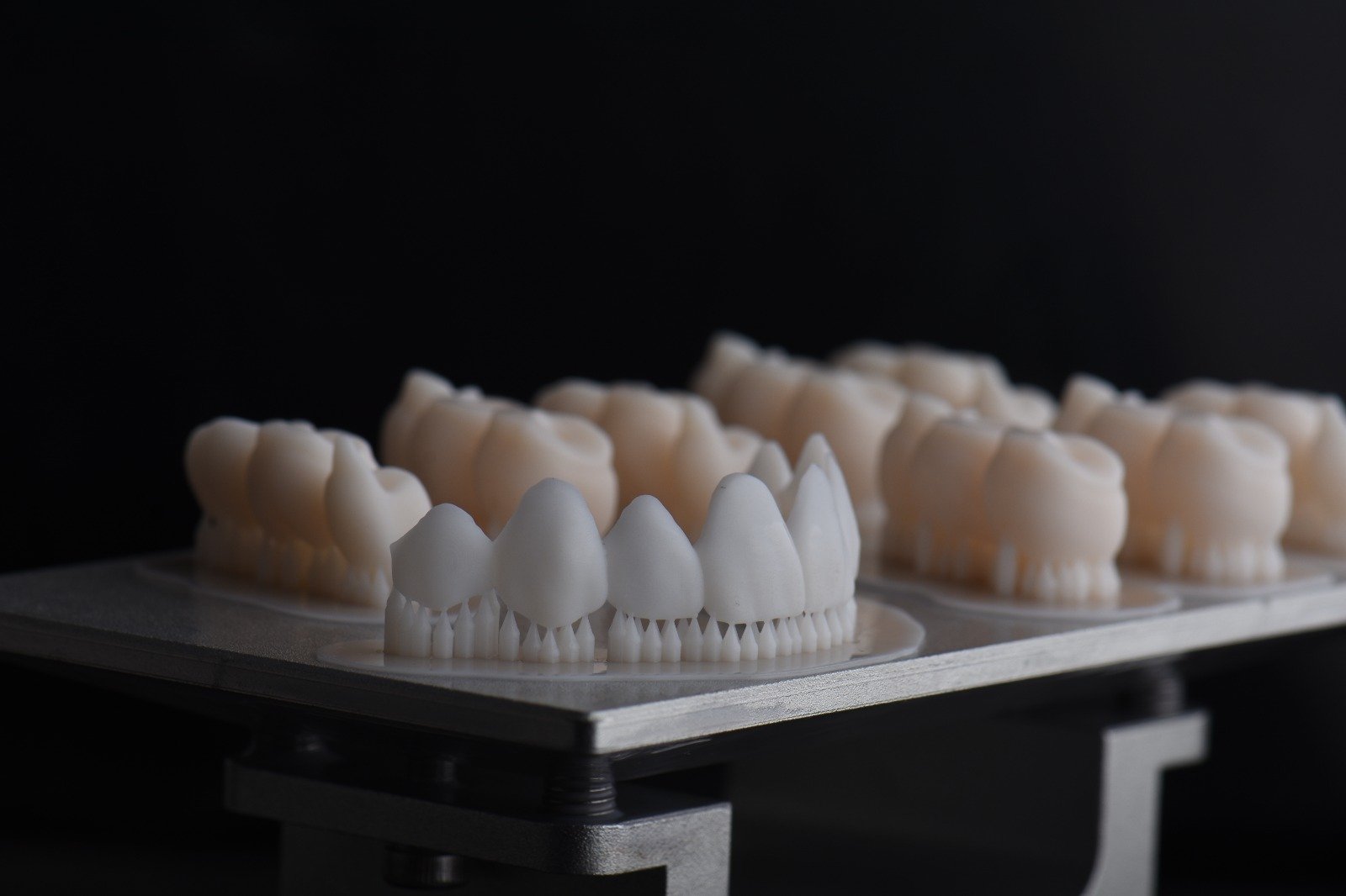 Step-by-step staining process for 3D-printed veneers.